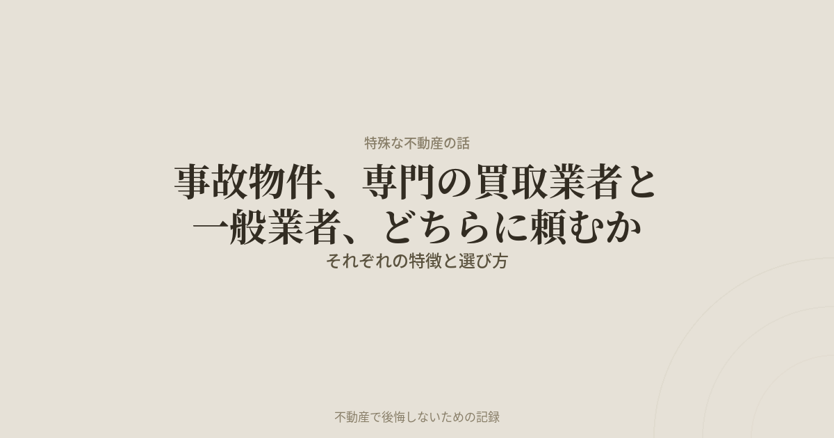 普通の不動産会社でいいのか、事故物件専門と書いてあるところに行くべきなのか。実際にいくつかの会社と話してみて、それぞれの特徴と向き不向きが見えてきました。