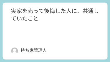 実家を売って後悔した、という話。実は、私はこれを何人からも聞いています。全員が「売らなければよかった」と言っているわけではありません。ただ、話をよく聞いてみると、ある共通点がありました。後悔している人...